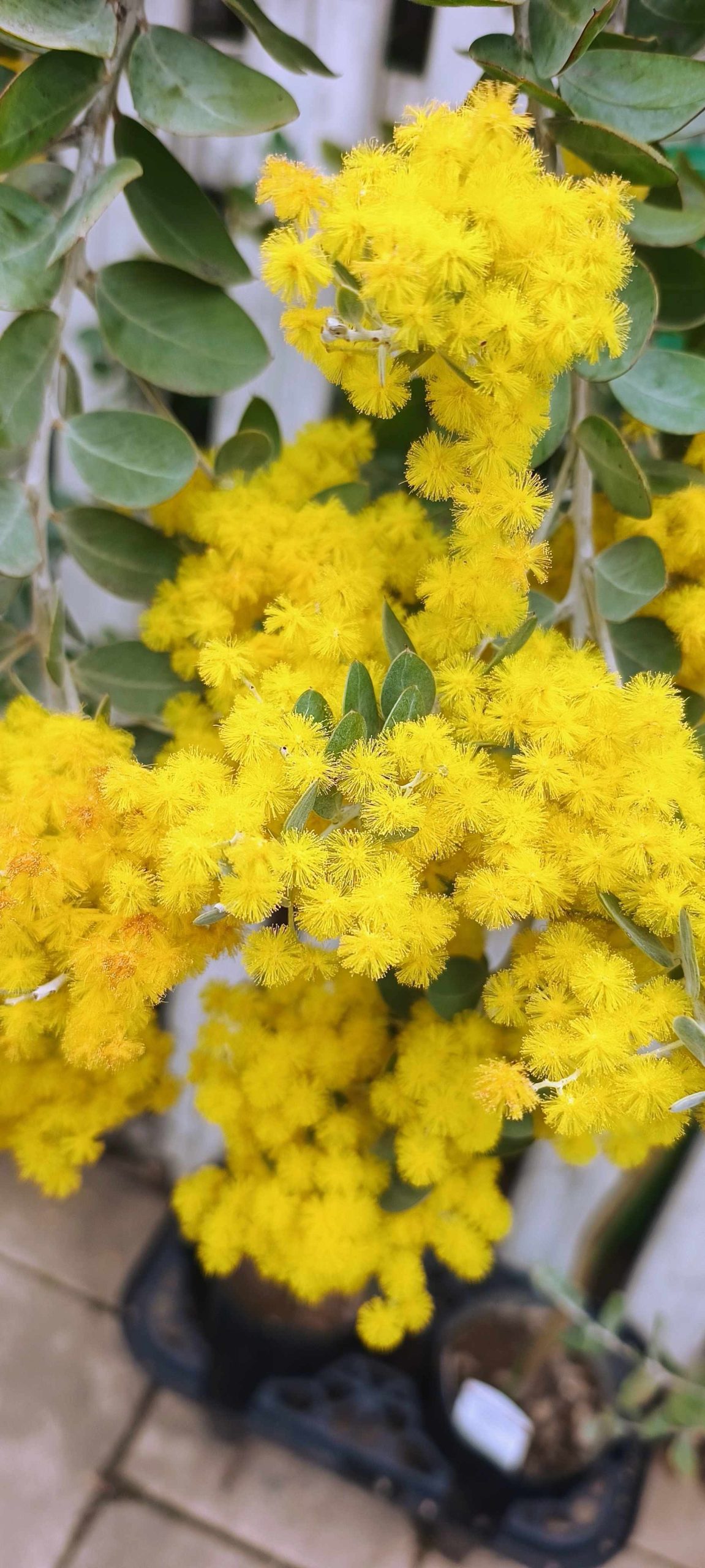 青空に映えるミモザが本当に綺麗で、しばらく時間を忘れて見入ってしまいました。